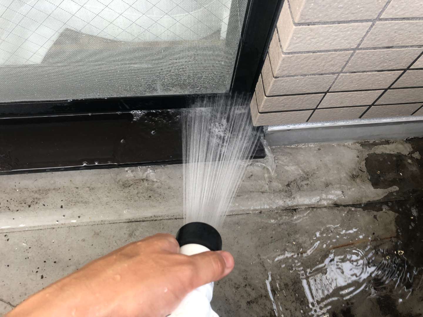 5時間に渡る散水調査でくたくたになりながらも原因を特定